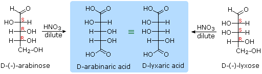 dilute nitric acid gave the diacid, glucaric acid, supporting the proposal