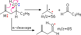Alpha-cleavage gives ions at m/z=57 & 85 Da. The