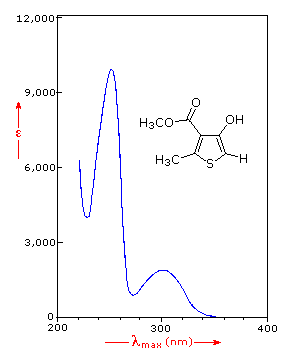 The presence of chromophores in a molecule is best documented by UV-Visible spectroscopy, but the failure of most instruments to provide absorption data for wavelengths below 200 nm makes the detection of isolated chromophores problematic. Fortunately, conjugation generally moves the absorption maxima to longer wavelengths, as in the case of isoprene, so conjugation becomes the major structural feature identified by this technique.