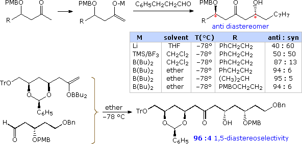 selectivity relative to the siloxy substituent is due to its chelation effect in the lithium enolate and non-chelated polar effect in the boron enolate. As a result,