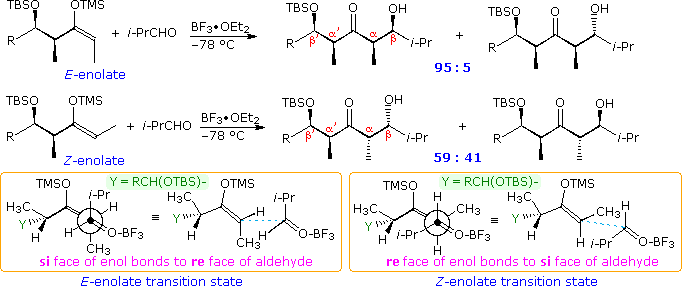 in which the si-face of the enolate bonds to the si-face of the carbonyl